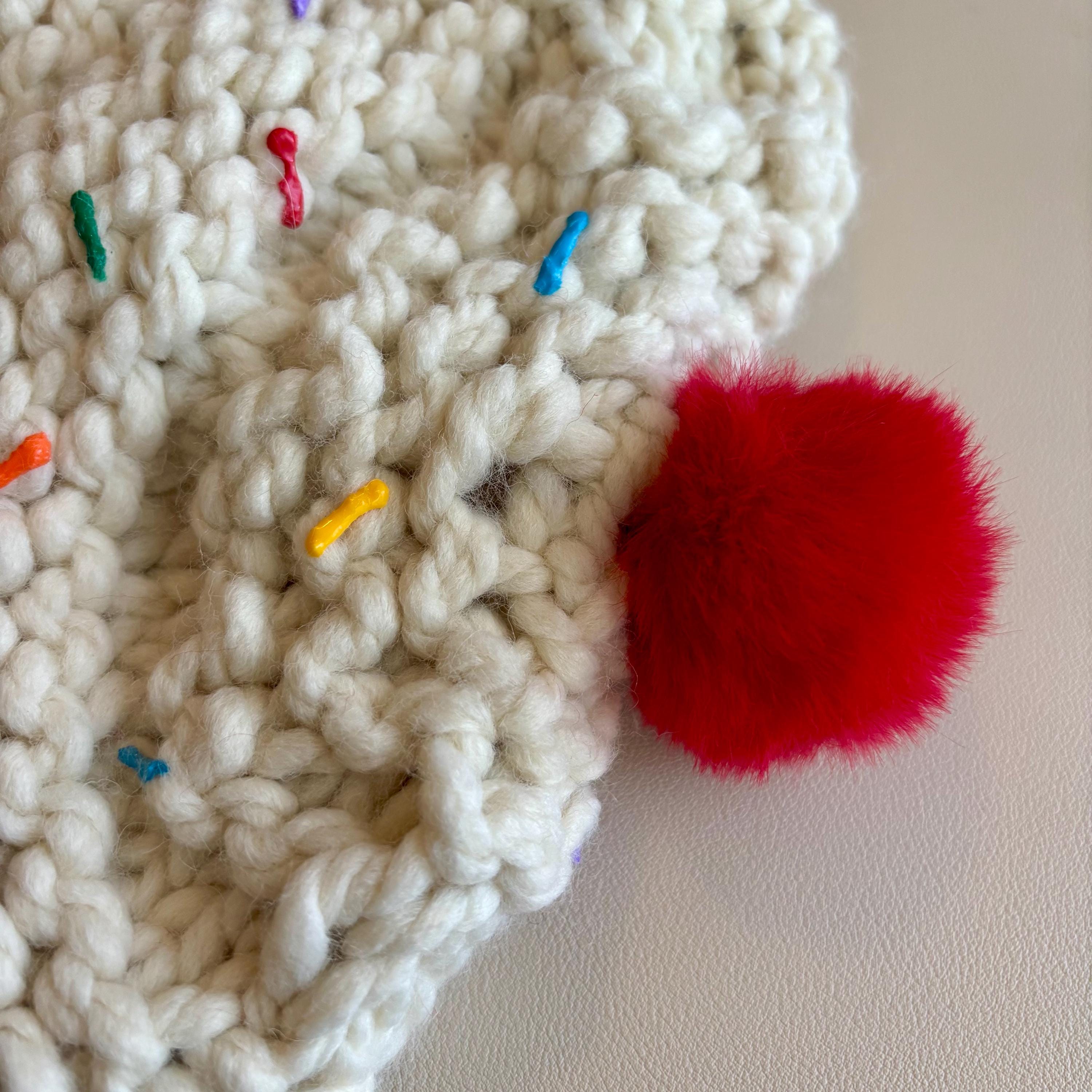 It is one of a kind as the sprinkles are added on to the beanie by hand and duplication of exactly where the sprinkles lie is difficult.