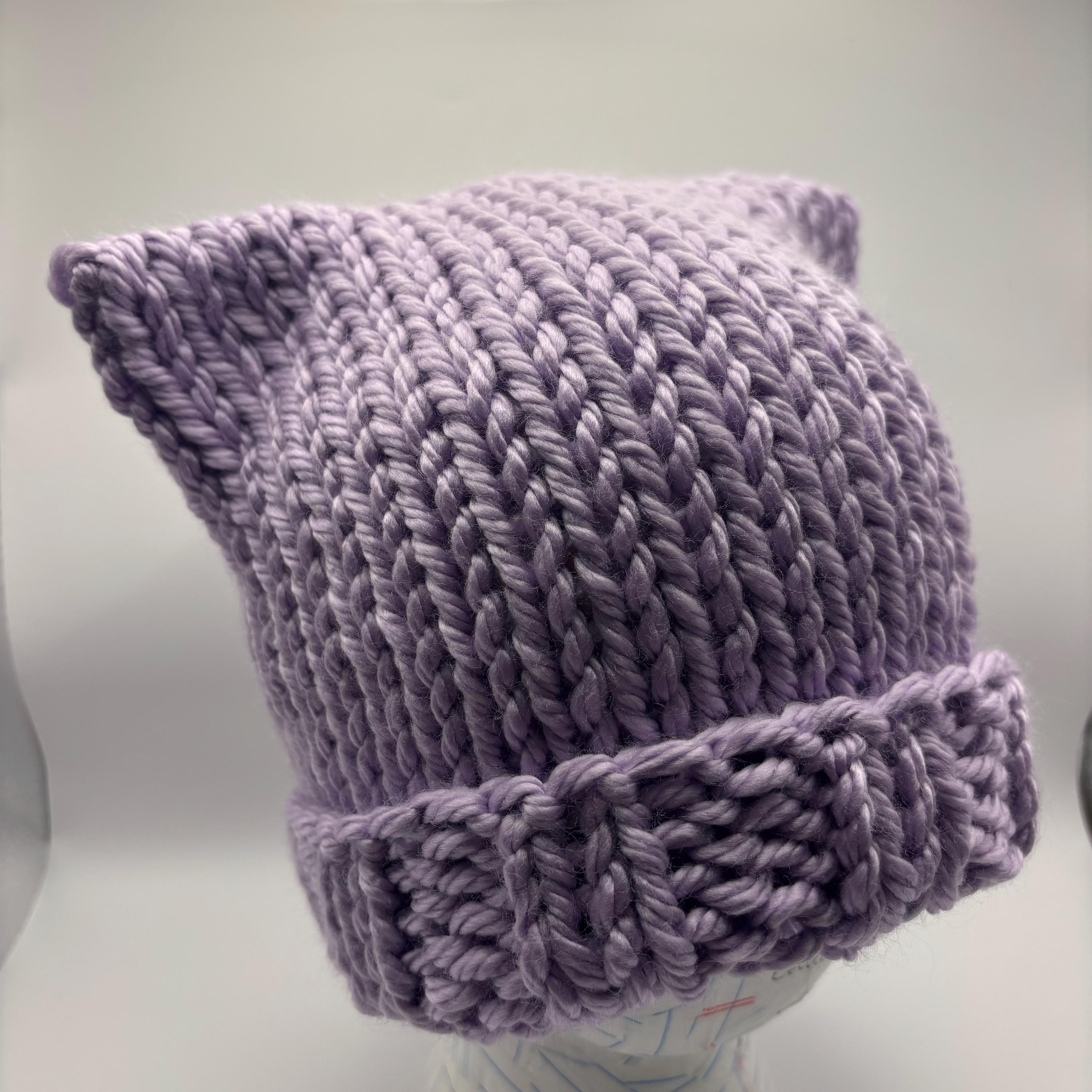 This is a great beanie for a cat lover, just put on the hat and then kind of squish the corners of the beanie a bit to make flatter ears. Imagine matching your kitty?!