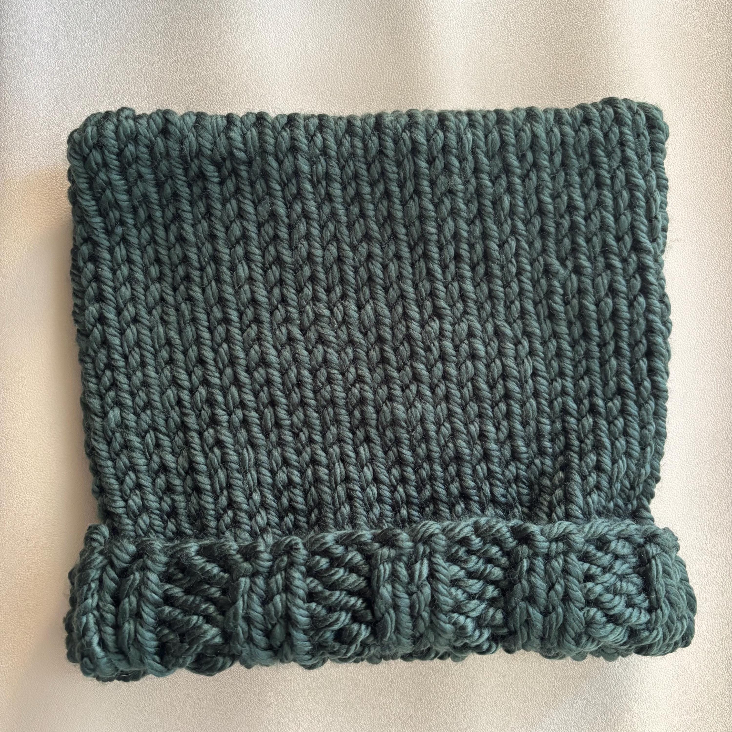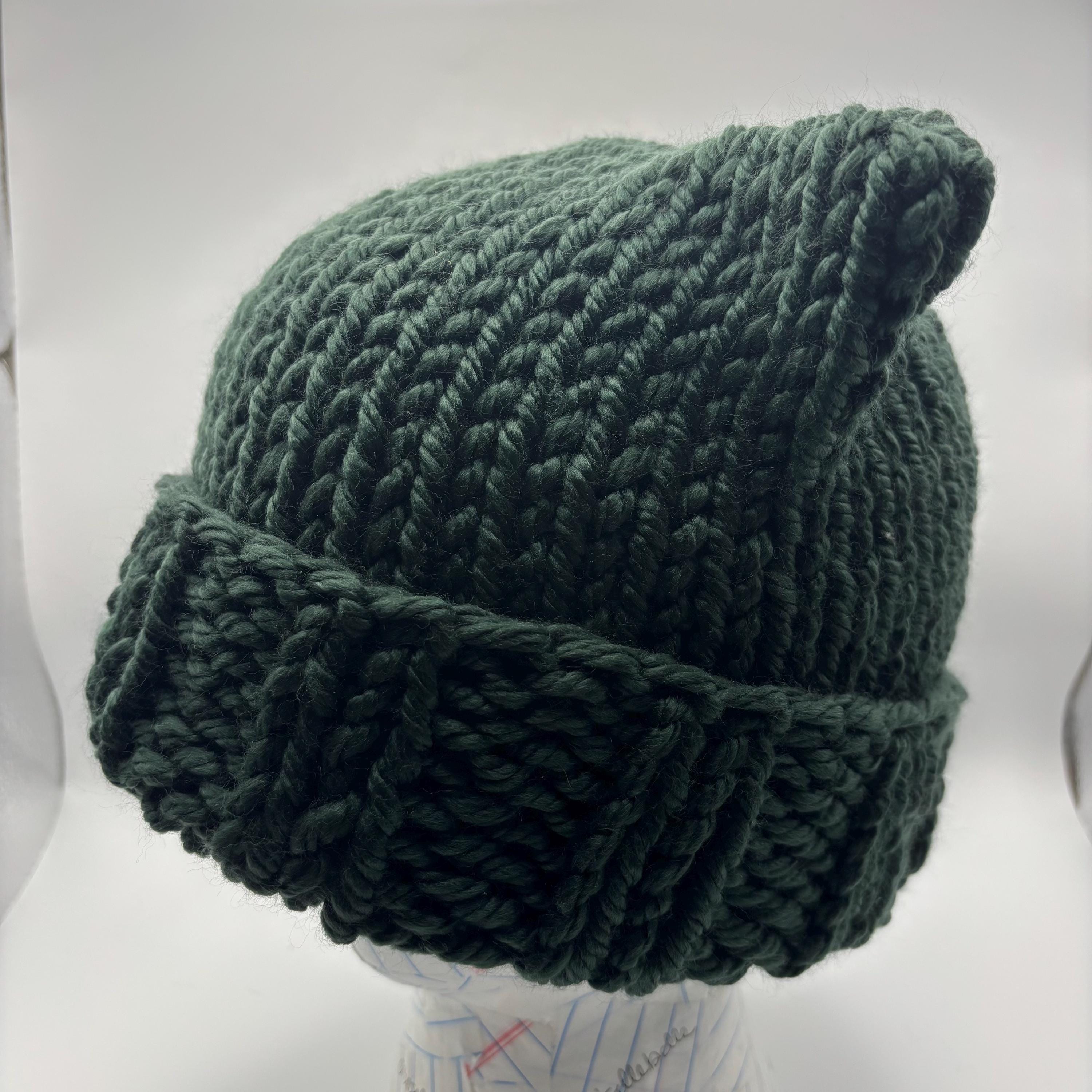 This beanie will fit an average adult head of about 21”-22” in circumference.